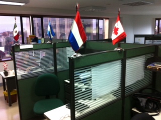 Here is my little cubicle in the international sector of the SENA headquarters, Around me are colleagues who work with partner organizations in different parts of the world. Below is an overview of the entire group of 15 staff in SENA International Relations: